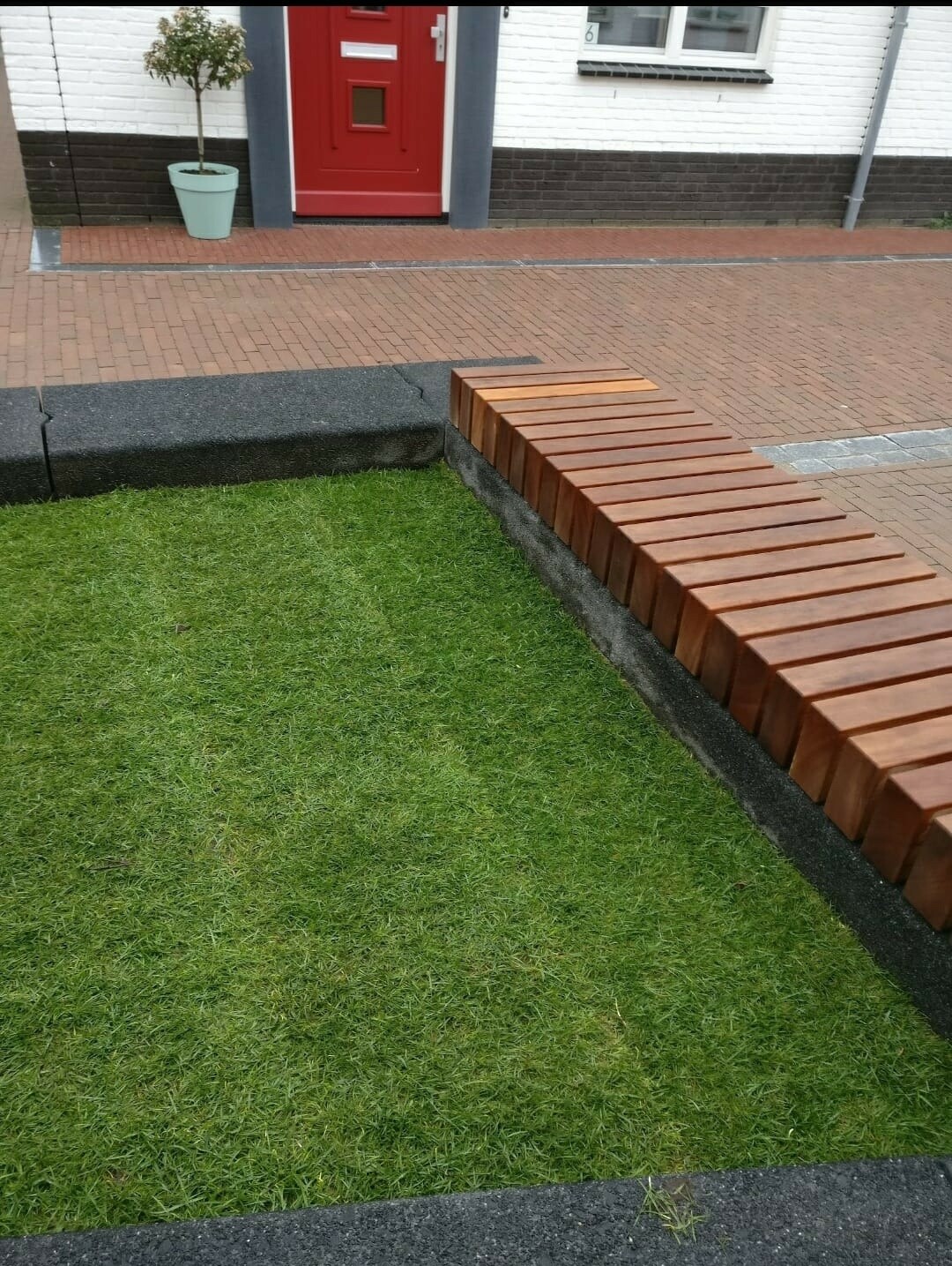 De grasmatten in de plantenbakken in het Hof van Wana zijn door bewoners van ons hofje zelf betaald en worden ook door bewoners zelf onderhouden. De kinderen spelen hier graag op en in. De gemeente heeft geen werk aan deze bakken.